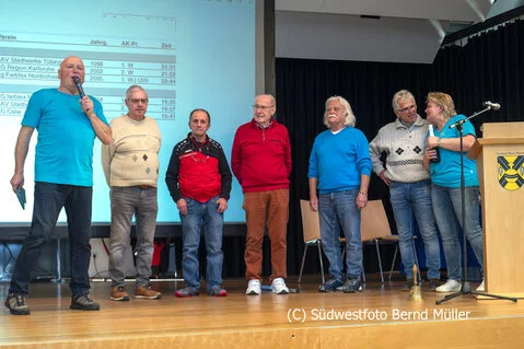 Von links: Hans-Jörg Schmid, Dieter Franke, Hans Flaig, Klaus Walter, Bernd Müller, Ewald Walker und Susanne Hezel